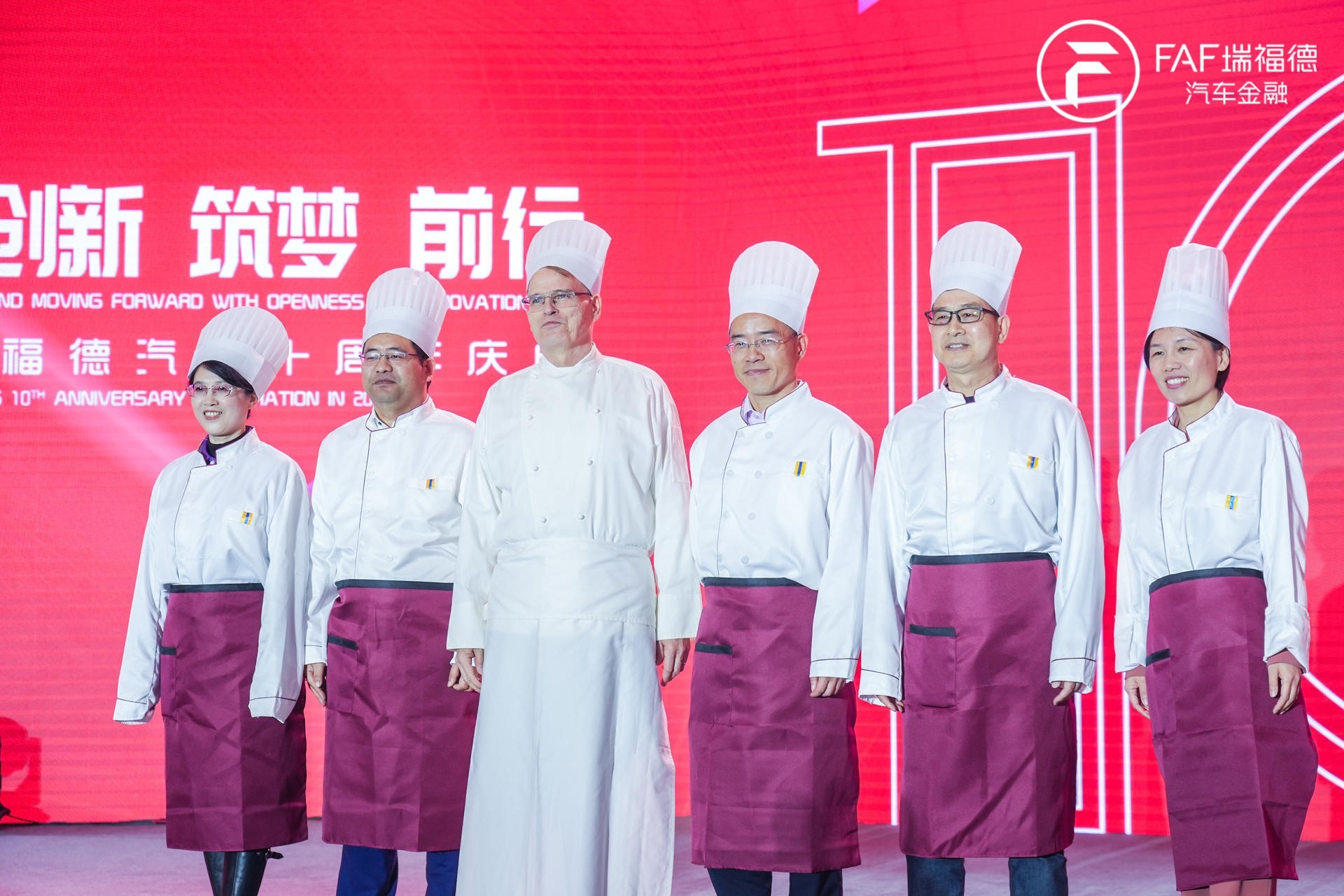 After Dr. Wolf Bay announced the opening of the celebration, attendees started partying and playing puzzle games outdoors on the lawn. Delicate desserts and beverages were served to embellish the greetings, while the live band and “Name that Song” lightened up the atmosphere. People recalled the company’s storied history and their impressed moments as if it was just yesterday. The celebration was brought to the climax when the senior executives, dressed up in chef uniforms, walked into the banquet hall unexpectedly holding dishes. “We are a financial service company,” said Dr. Bay earlier, “that means everyone should think customer”. The first dish – meatballs, indicating reunion – was served to each table, gaining rapturous applause.