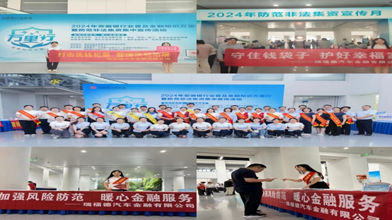 (一)现场宣传。2024年3月15日、6月14日、9月26日,瑞福德汽金分别开展了“金融消保在身边 保障权益防风险”“加强风险防范 暖心金融服务”“金融为民谱新篇 守护权益防风险”等现场宣传活动,通过拉横幅、摆放展架、分发宣传资料、现场讲解的方式,普及关于防范非法集资、打击治理电信网络诈骗和跨境赌博等注意事项、树立正确投资理念、个人信息保护、金融消费者八项权益、征信服务等金融知识,并开展有奖问答活动,吸引了众多消费者积极参与。